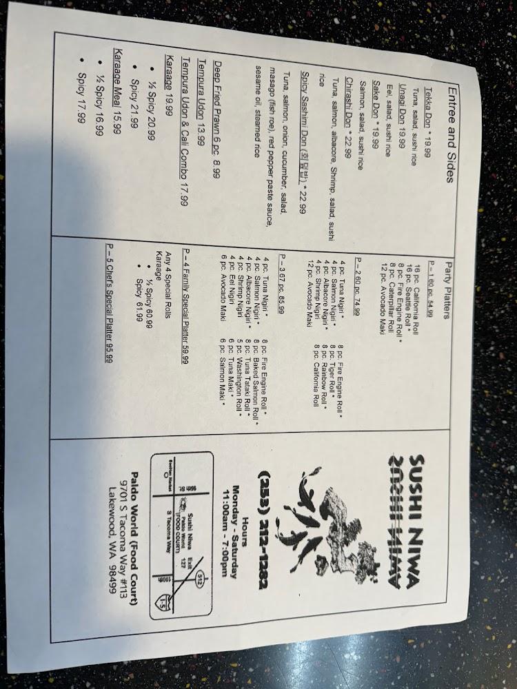 Sushi Niwa's menu features an array of sushi rolls, each crafted with fresh ingredients. You'll find classics like the California roll and tuna rolls, alongside inventive options like the Fire Engine Roll. Each offers a unique flavor profile that suits varied preferences.